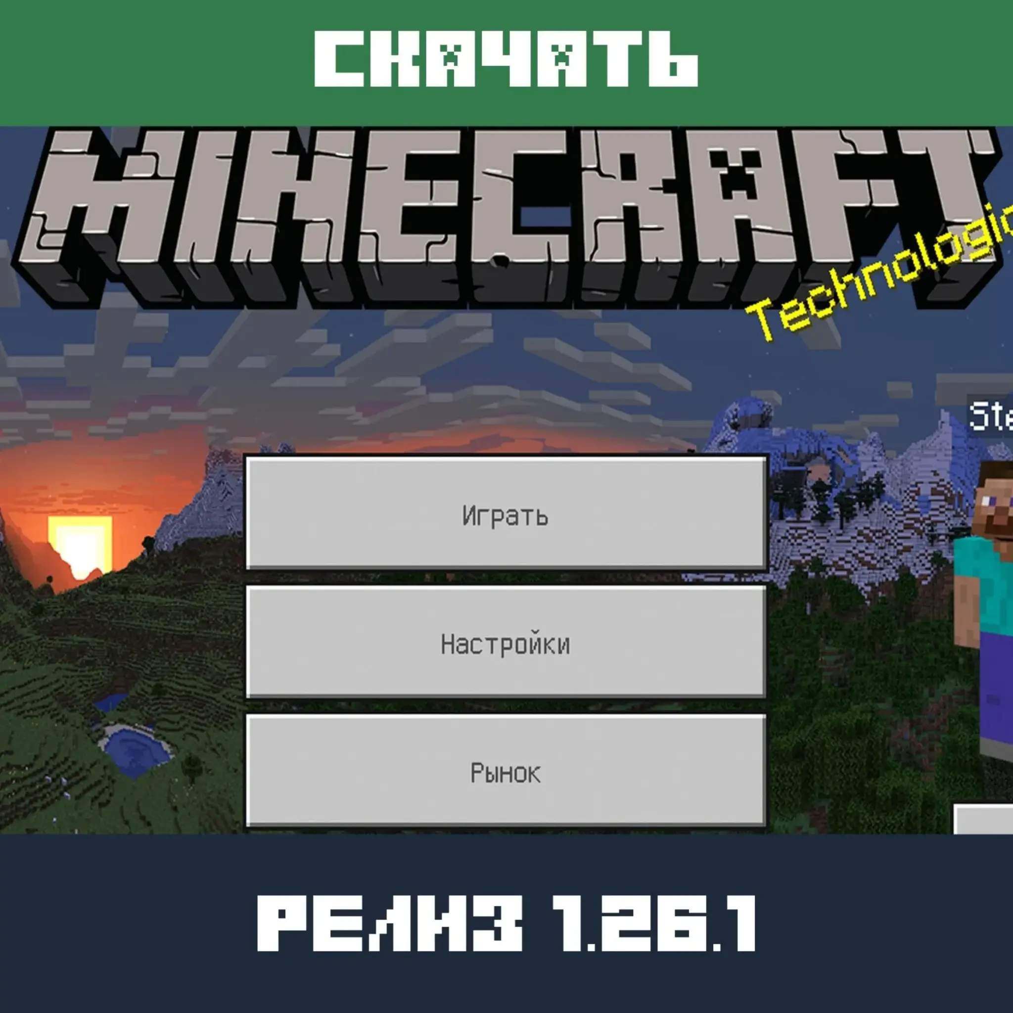 Скачать Майнкрафт 26.1 на телефон стоит тем, кто хочет корректный интерфейс и официальный релиз без изменений игрового контента.